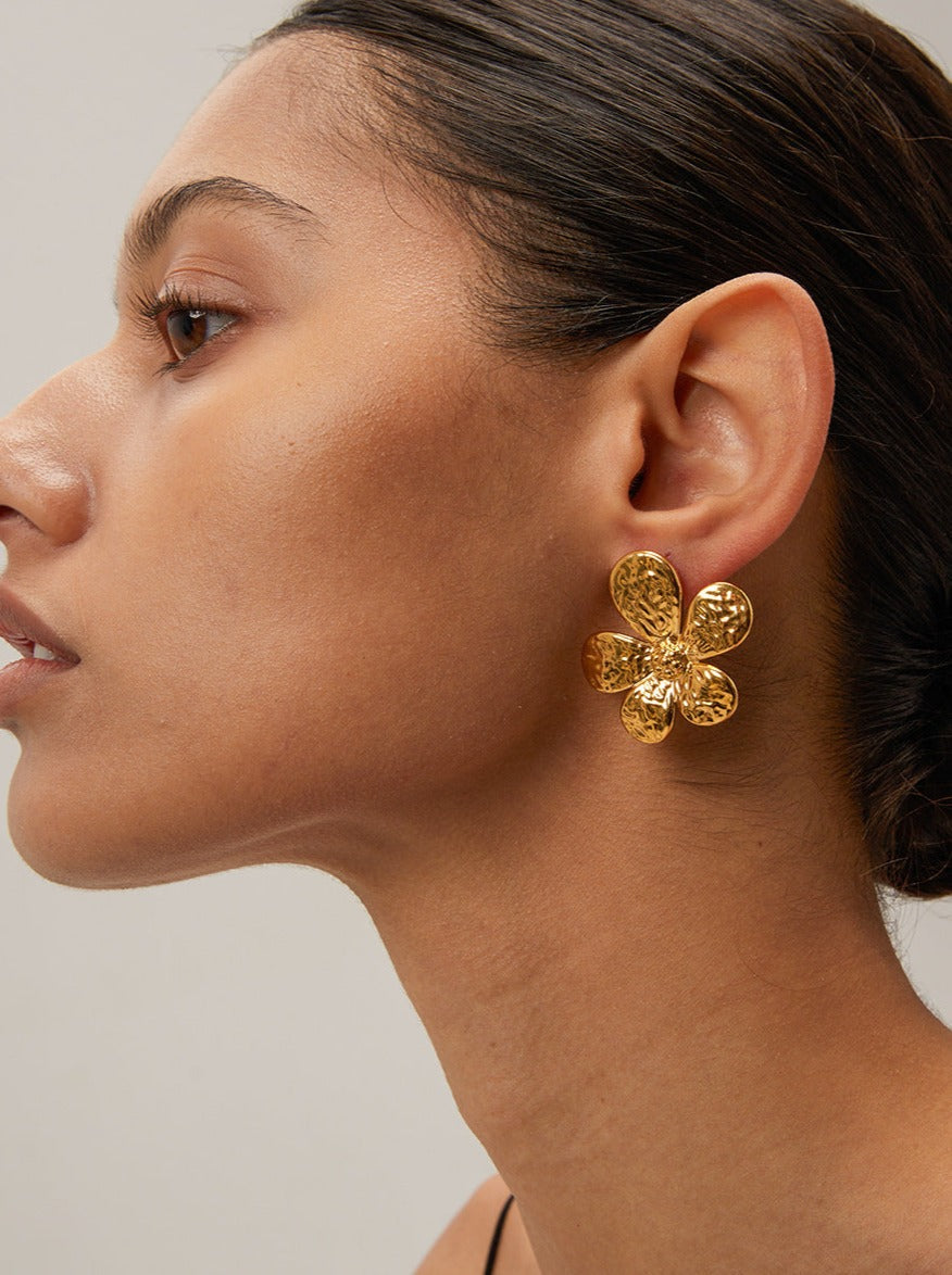 Orecchini a fiore in acciaio inossidabile in oro 18 carati