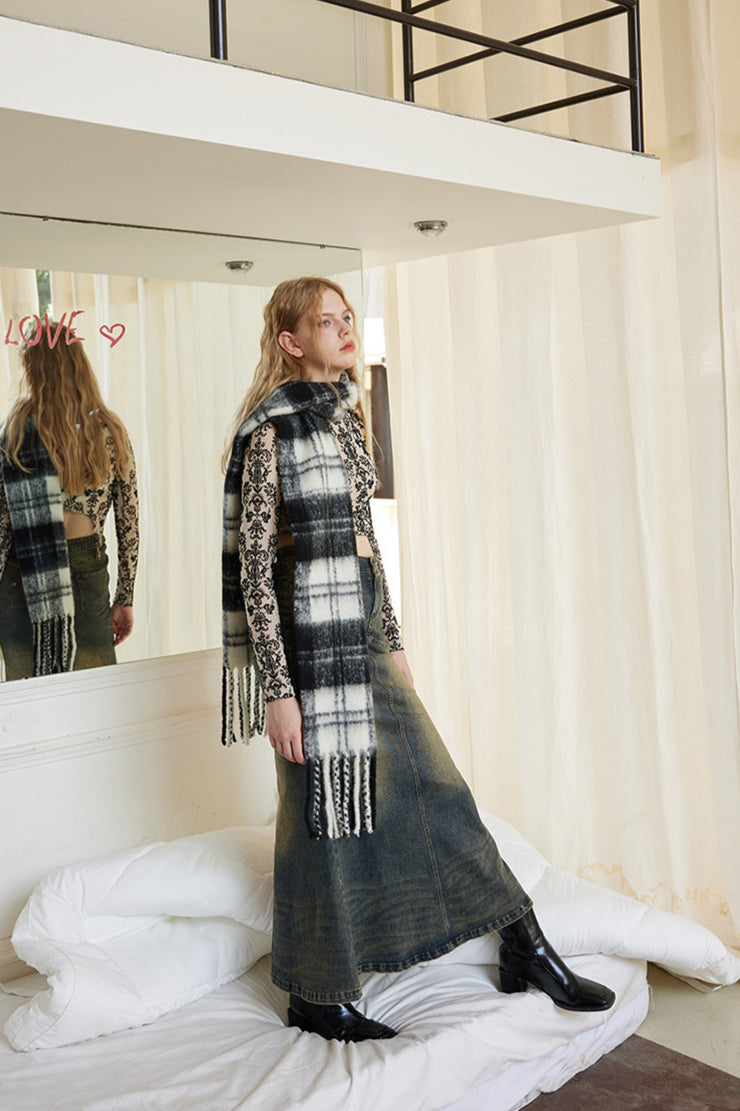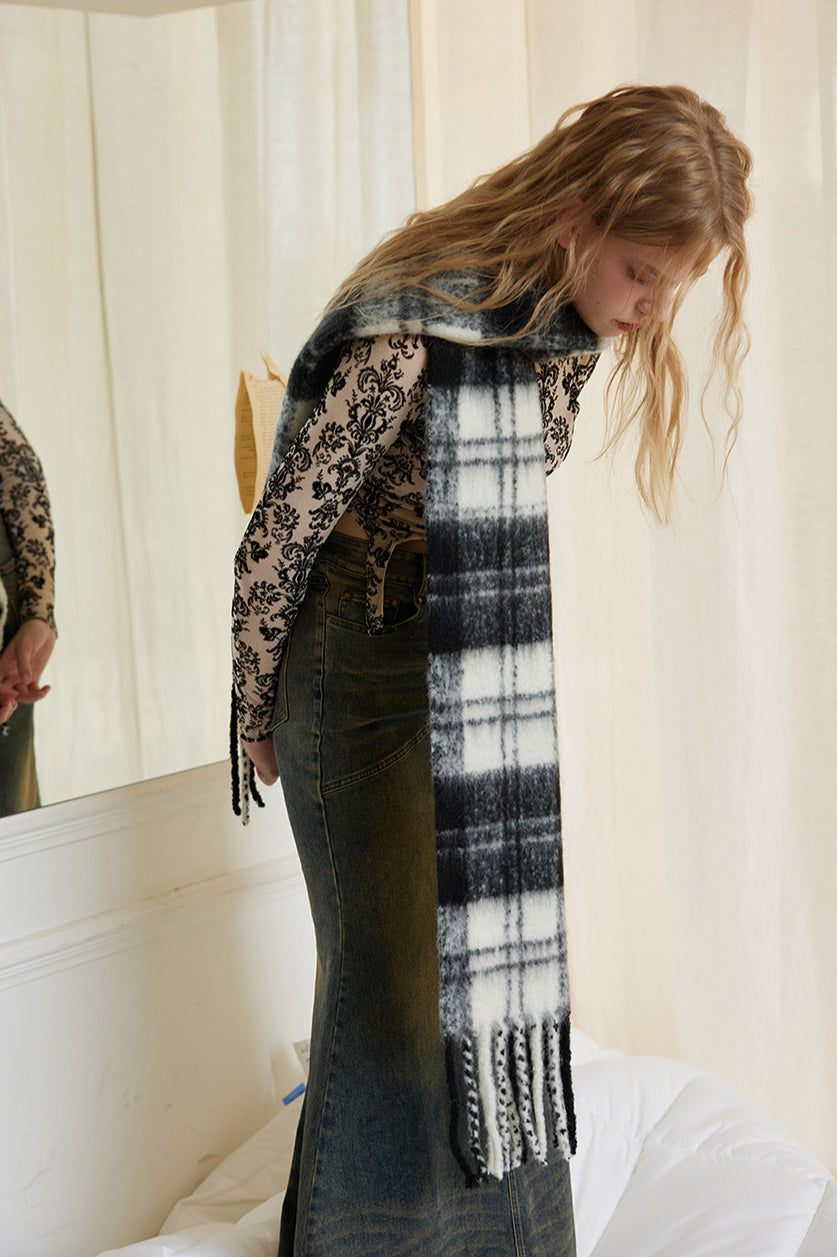 Avvolgiti nel calore e nello stile con la nostra sciarpa oversize a quadri con frange. Questo accessorio audace e distintivo combina vivaci motivi a quadri con un materiale ultra morbido, rendendolo il compagno ideale per le giornate fredde. Perfetta da indossare sopra abiti casual o chic, questa sciarpa è tanto funzionale quanto alla moda.