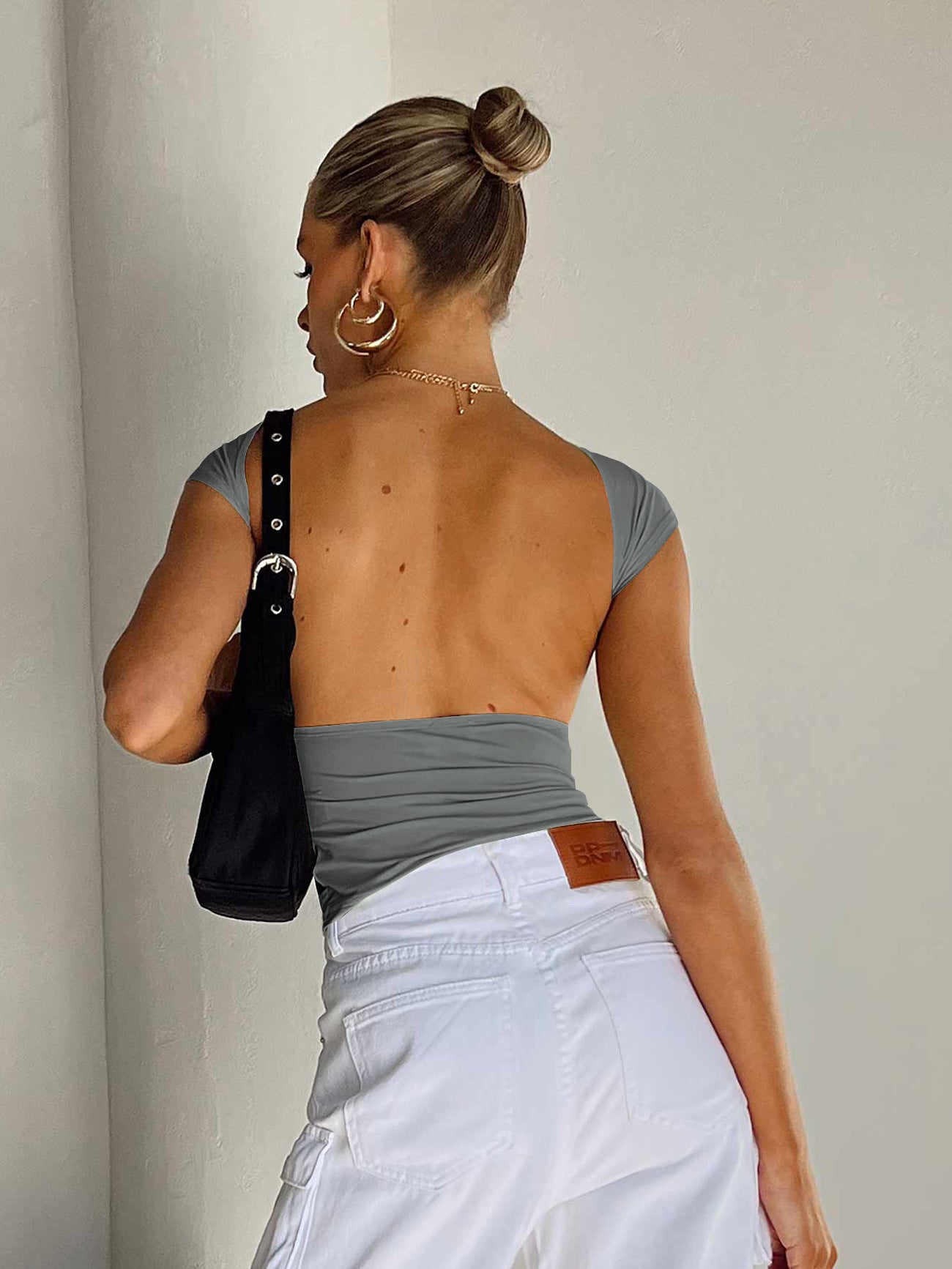 Top aderente con schiena scoperta in grigio scuro: sofisticato e audace
