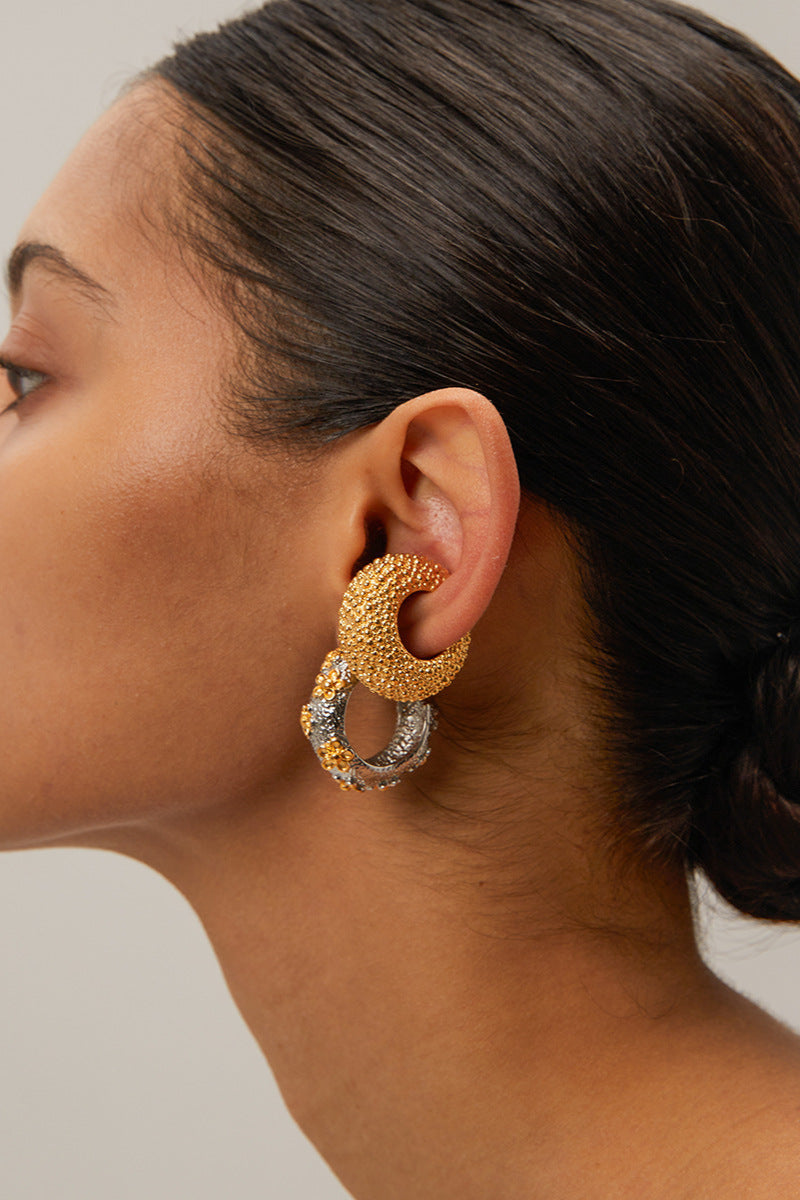 Eleganti orecchini a cerchio con motivo floreale in rilievo