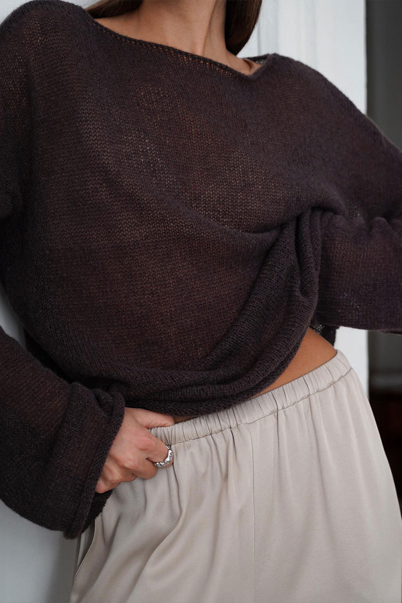 - Tessuto a maglia diafano: realizzato in una maglia leggera e semitrasparente che trasuda raffinatezza e femminilità.
