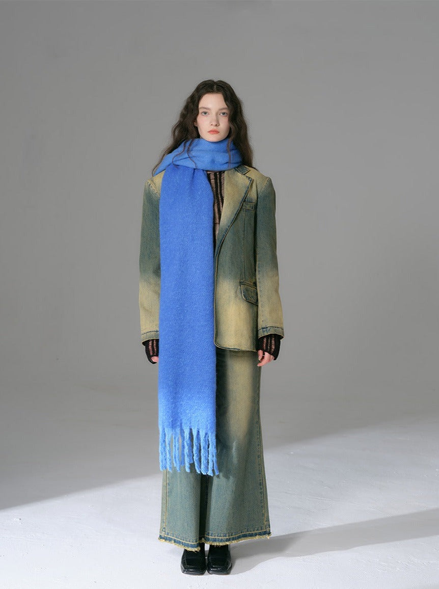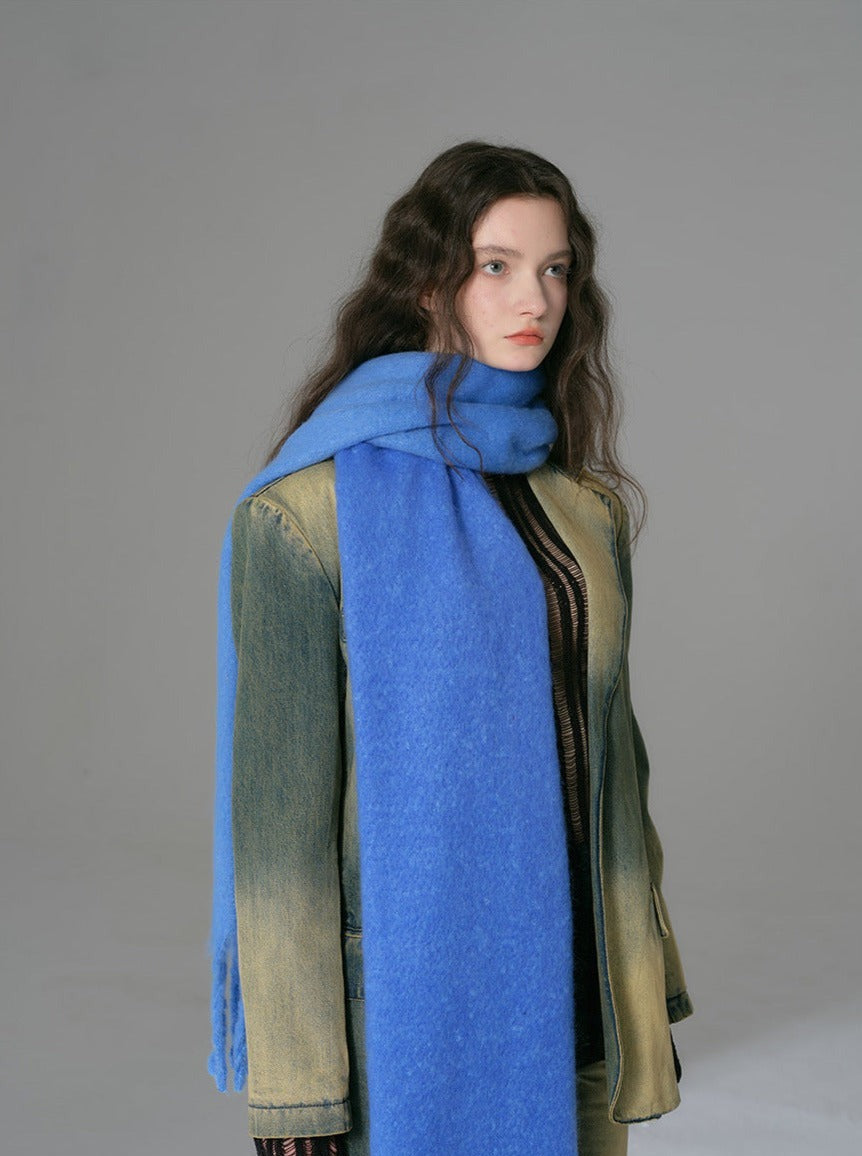 Esalta i tuoi outfit invernali con questa sciarpa oversize blu tinta unita, un mix sorprendente di colori vivaci e design accogliente. Caratterizzata da una silhouette senza tempo con un giocoso dettaglio di frange, questa sciarpa è perfetta per aggiungere personalità al tuo look, mantenendoti al caldo e comoda.