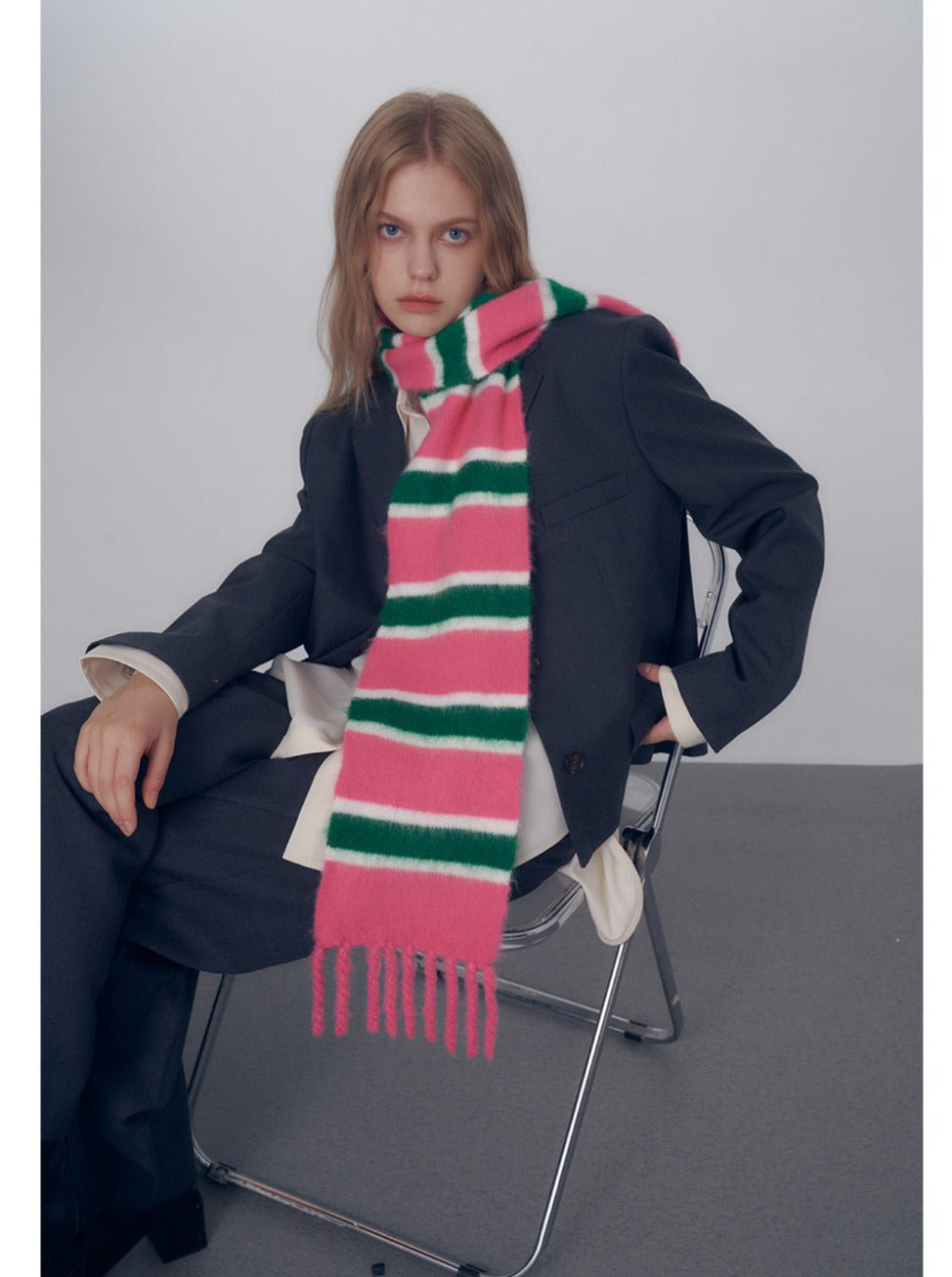 Fai una dichiarazione audace questa stagione con la sciarpa oversize a righe rosa e verdi. Che sia abbinata a un elegante abito sartoriale o a una calda maglia, è la combinazione perfetta di calore e giocosità per impreziosire il tuo look. Aggiungi questo accessorio versatile e divertente al tuo guardaroba oggi stesso!