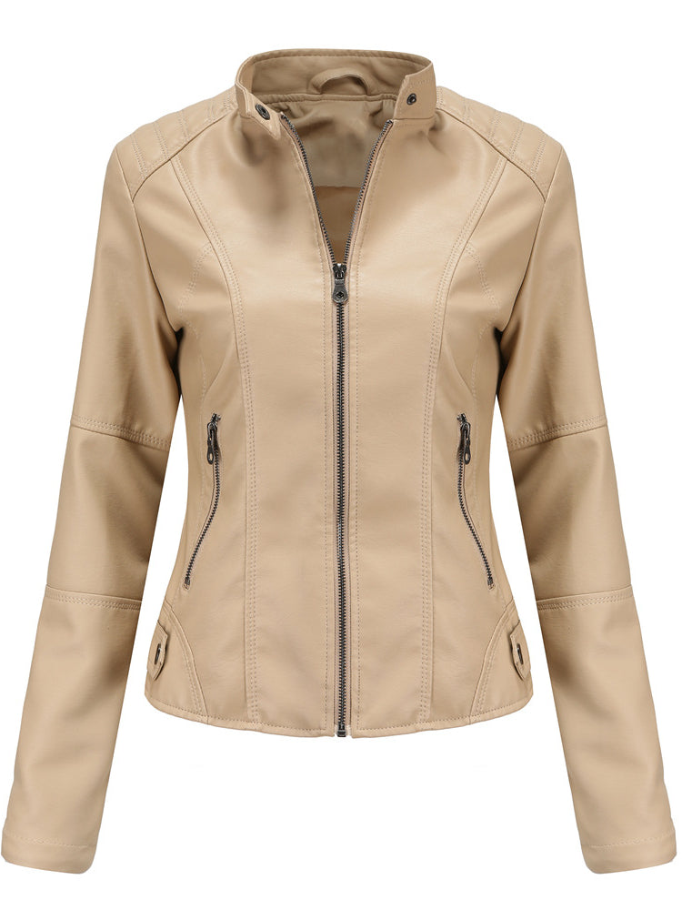Abbraccia uno stile senza tempo con questa classica giacca da motociclista in similpelle. Con la sua silhouette elegante, il design pulito e i dettagli alla moda, questa giacca è il capo perfetto da indossare a strati durante le mezze stagioni. Disponibile in colori versatili come nero, beige, marrone e tortora, questa giacca sarà il tuo capospalla preferito per look chic e disinvolti.