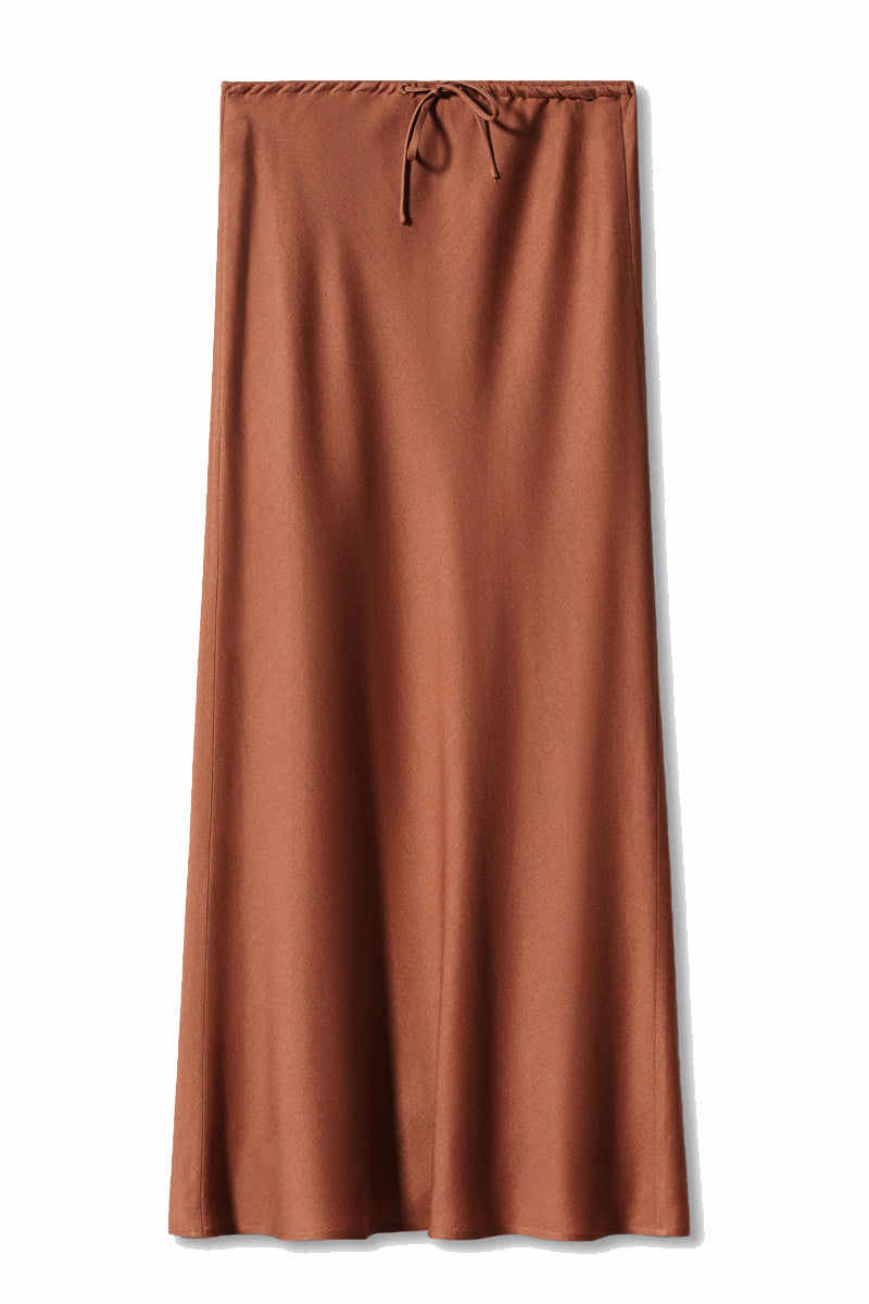Concedetevi un'eleganza moderna con questa gonna midi in raso color terracotta. Caratterizzata da un design fluido e setoso e da una calda tonalità terrosa, questa gonna si adatta facilmente a qualsiasi stile. La coulisse regolabile in vita aggiunge un tocco di praticità, mentre la luminosa finitura in raso ne esalta il fascino lussuoso. Perfetta per la versatilità dal giorno alla sera, questa gonna è un capo essenziale per il guardaroba.