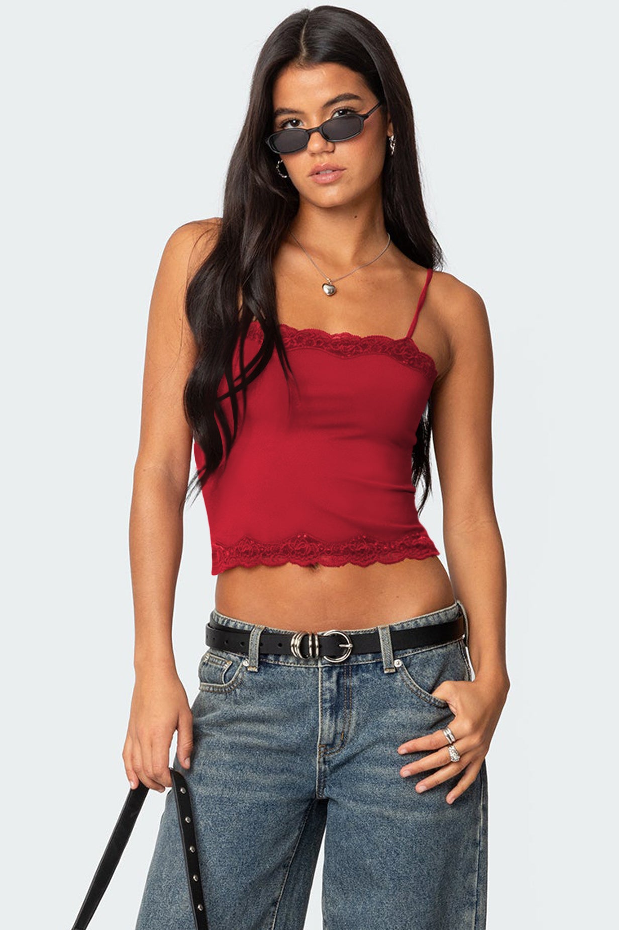Canotta corta con bordi in pizzo Élan: eleganza disinvolta con un tocco civettuolo